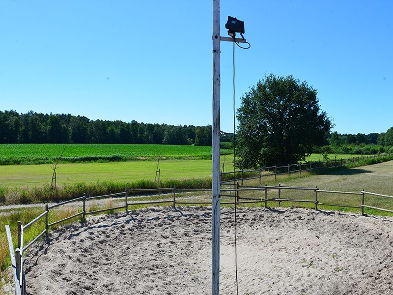 Mit einem Durchmesser von 18 Metern und einer festen Einzäunung wird unser Longierzirkel gerne zum intensiven Training an der Longe genutzt.